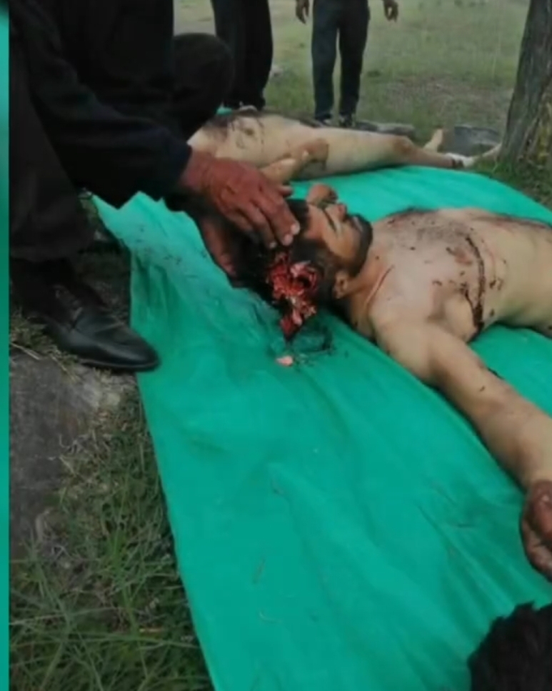 Оставшихся в живых братьев вывели на улицу и потащили в сторону склада, находившегося через дорогу. Там же их и расстреляли. Тела шахидов полностью без одежды силовики отвезли и бросили на футбольное поле в Барзуде.
